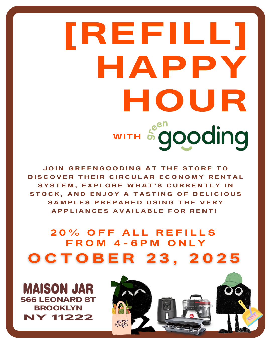 REGISTERIt’s Earth Month and we have another refill happy hour to celebrate! 🥳🌎Join @harlembakingco and @bigreuse at Maison Jar on 4/24 from 4-6pm to learn all about closed loop systems and composting 🧡 (and yes, there will be cake samples!) 🎂 See you there 😎