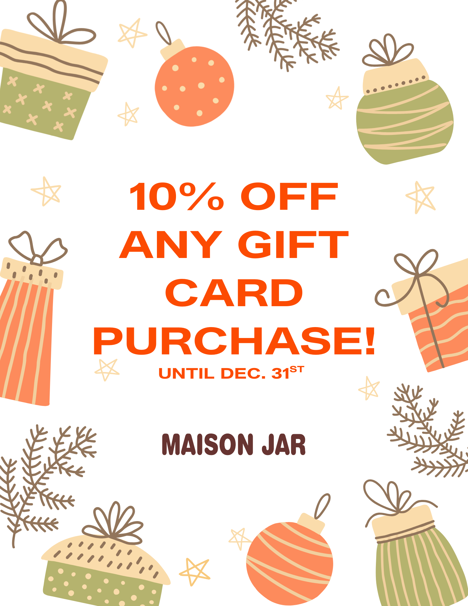 For the month of December 2025, get 10% ANY purchase of a gift card! The perfect gift for new low-waste shoppers in your life.