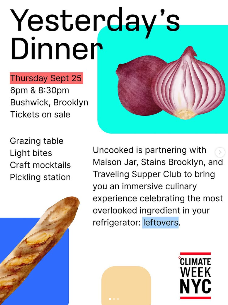 REGISTERYesterday’s Dinner is an immersive culinary experience celebrating the most overlooked ingredient in your refrigerator: leftovers.